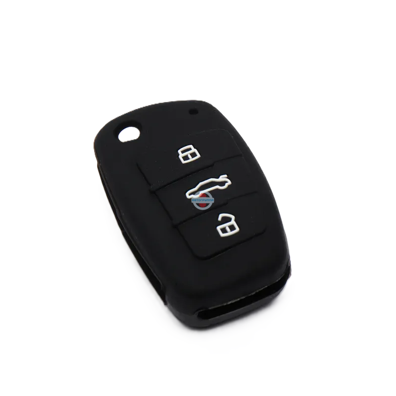 Чехол для ключа Audi выполнен в черном цвете и изготовлен из мягкого силикона