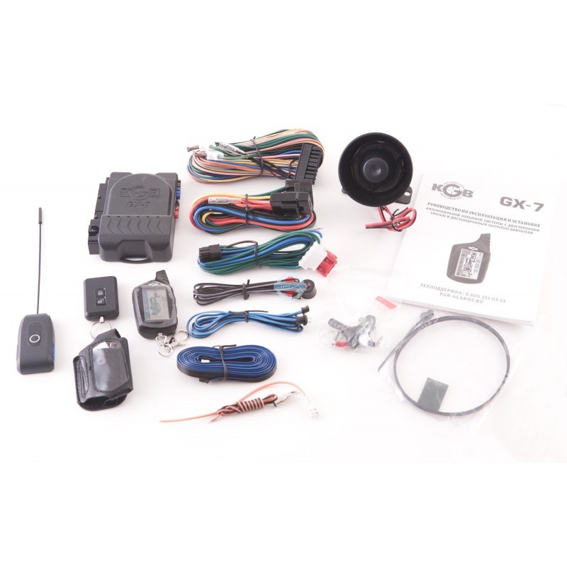 Комплектация системы охранная системы KGB GX-7 не разочарует владельца, поскольку включает, помимо основных блоков – основного и добавочного брелоков с двухсторонним контактом – все необходимые аксессуары и приспособления, требующиеся для монтажа на автомобиль.