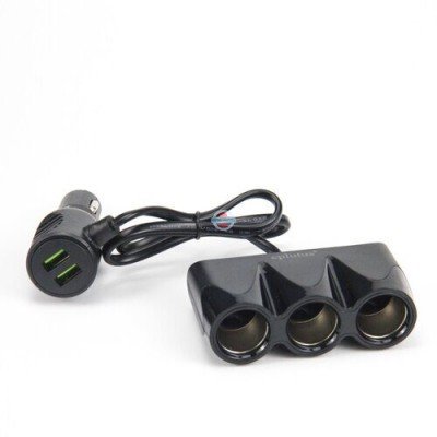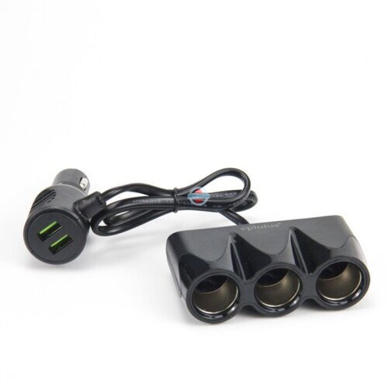 Автомобильный разветвитель прикуривателя модели Eplutus FC-341 позволяет одновременно запитывать до 5-ти электронных гаджетов общей мощностью не более 120Вт, подключая их к собственной электросети автомобиля (12-24В DC). Устройство оснащено тремя выходными розетками, аналогичными разъему авто-прикуривателя и тремя 5-вольтовыми USB разъемами.