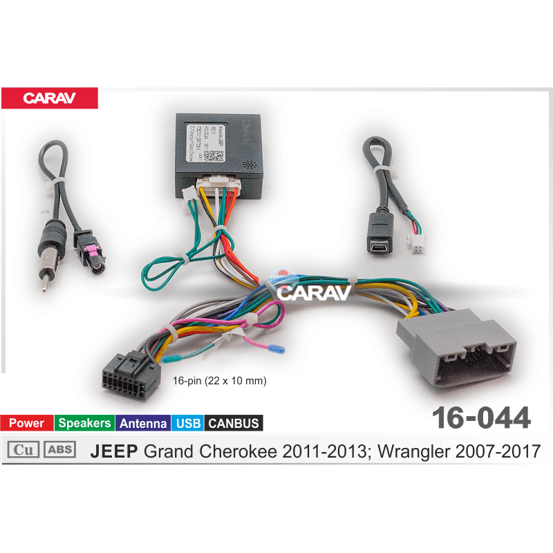 Комплект проводов для подключения Android Carav 16-044 представляет собой специальное приспособление, с помощью которого можно легко заменить штатную акустическую систему в JEEP выпуска 2010-2013 любой другой автомагнитолой, типоразмеров 1DIN, 2DIN, 9′, 10.1′ дюймов. Достоинством Carav 16-044 является отсутствие необходимости вмешиваться в проводку авто – резать провода, а затем соединять их. В переходнике предусмотрен разъем, позволяющий соединить штатный вход с одной стороны, а с другой – разъем для Android автомагнитолы.