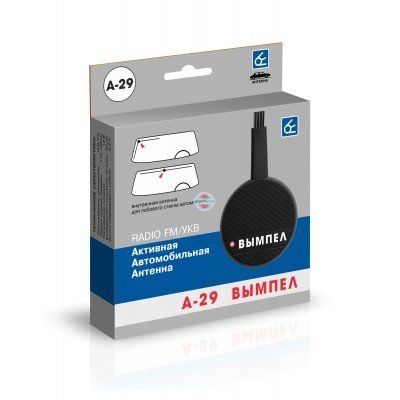 Многие производители автомобилей, к сожалению, не предусматривают внедрение штатного места под автомобильные антенны. Учитывая, что немногие современные автомобили обладают штатными антеннами, на помощь приходят компактные активные антенны, которые необходимо устанавливать внутри салона. Автомобильная антенна Вымпел А-29 обладает легкой установкой и повышенным приемом радиопередач (причем, на любом расстоянии и на всех существующих диапазонах).