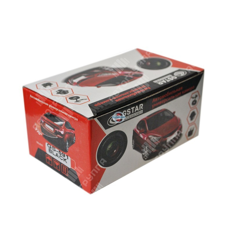Черная универсальная камера заднего вида Gstar GS 591 с парковочными метками и влагозащитой.