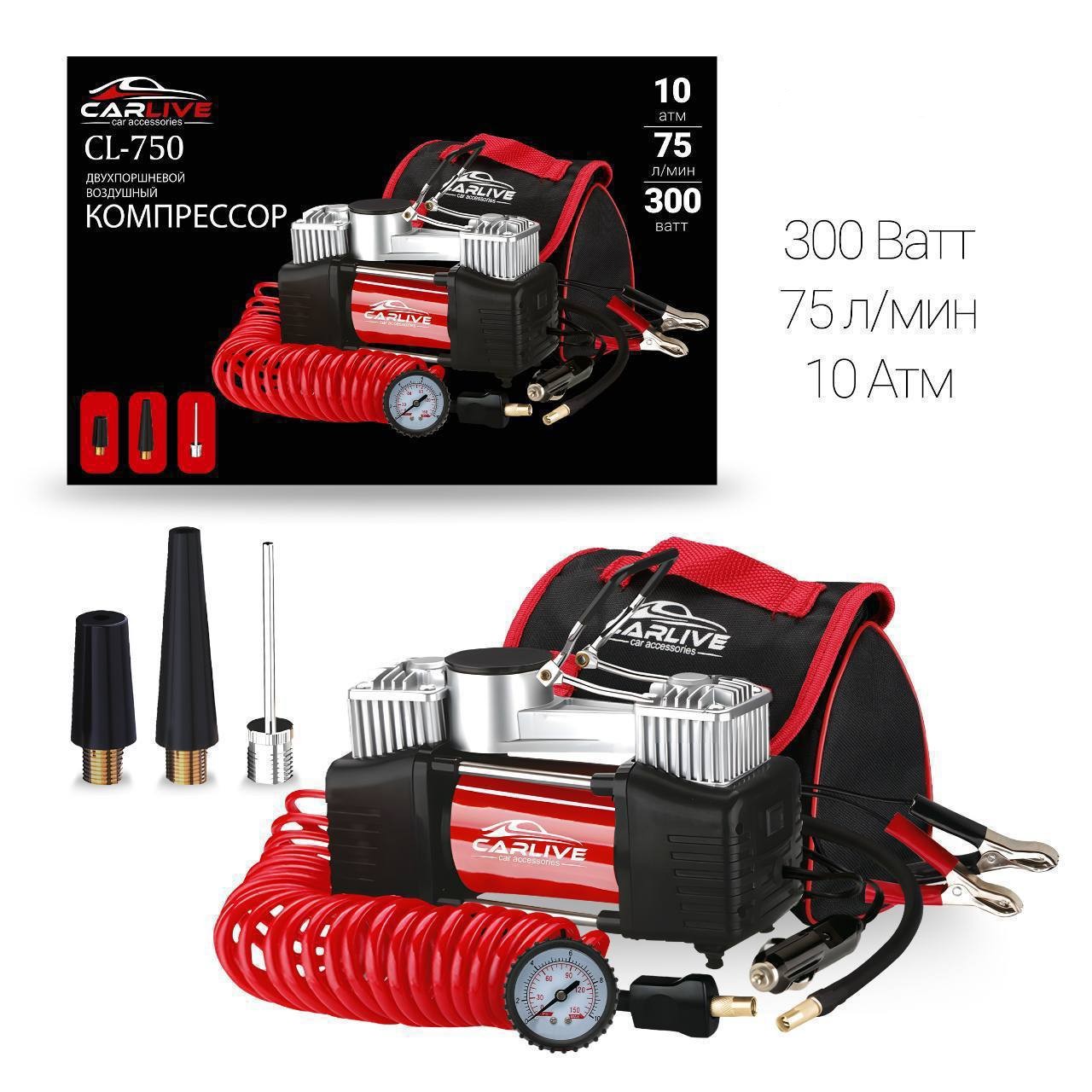 Автоматический компрессор Carlive CL-750 предназначен для оперативного восстановления необходимого давления в шинах любых транспортных средств.