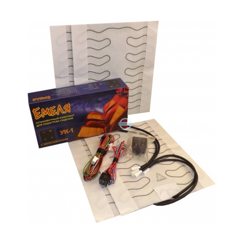 Емеля УК 1 – подогрев сидений автомобиля со спинкой. В комплекте 2 шт. Устанавливается под обшивку сиденья автомобиля ВАЗ 2110. В качестве нагревателя используется провод. Имеется сдвоенная кнопка управления с цветовой индикацией режимов подогрева. Обладает функцией автоматического отключения при глушении автомобиля и защитой от короткого замыкания и испарения.