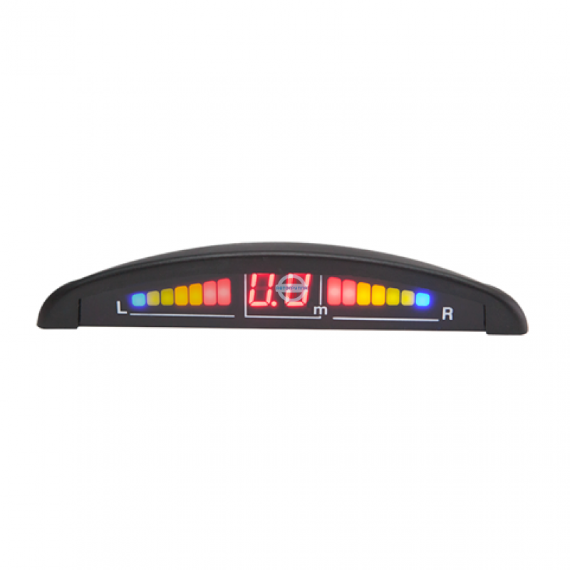 Парковочный радар Y-2616 на 4 датчика 22 мм от компании Sho-me. Определяют наличие препятствия на расстоянии 0 — 1,5 м. Информация о скорости сближения, стороне борта и расстоянии отображается на дисплее, который устанавливается на приборную панель. Предусмотрено и звуковое оповещение о приближении препятствия.