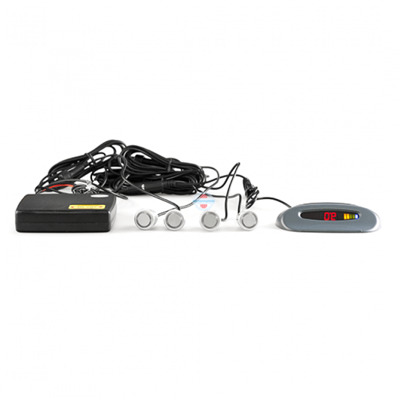 Парковочный радар Y 2620 с 4 датчиками от компании Sho-Me. Устанавливаются на задний бампер. Зеркальный дисплей разделен на две части, указывающие на сторону препятствия. Дисплей также информирует о расстоянии до преграды и скорости приближения к ней. Устанавливается под потолок в задней части автомобиля. Обзор информации через зеркало заднего вида.