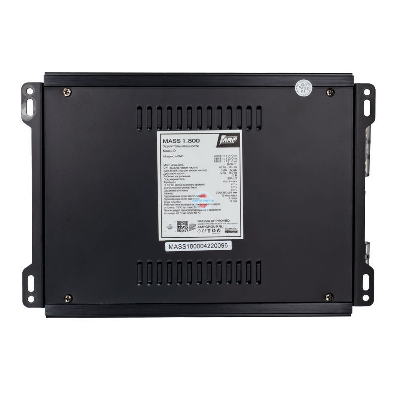 Новую серию усилителей MASS открывает модель 1.800. Усилитель специально разработан для работы с сабвуферами и способен работать на нагрузку в 1 Ом, с отдачей 800 ватт. Компактные размеры и выносной регулятор уровня позволяют максимально скрытно установить данную модель. На борту присутствует фильтр инфранизких частот, сабсоник, для работы с не самыми мощными сабвуферами.